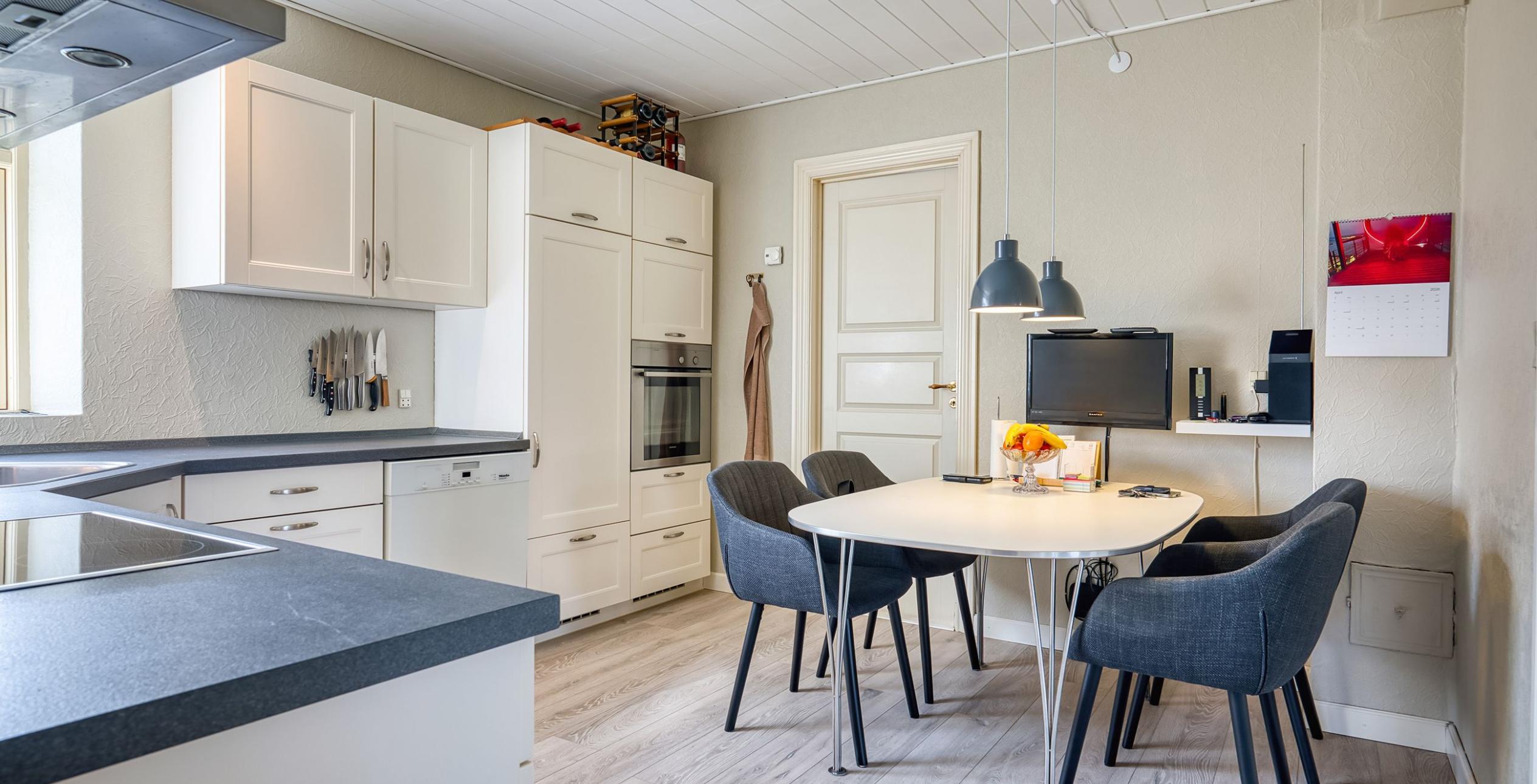 hvor der også er spisekrog og gulvvarme, er der adgang til kombineret