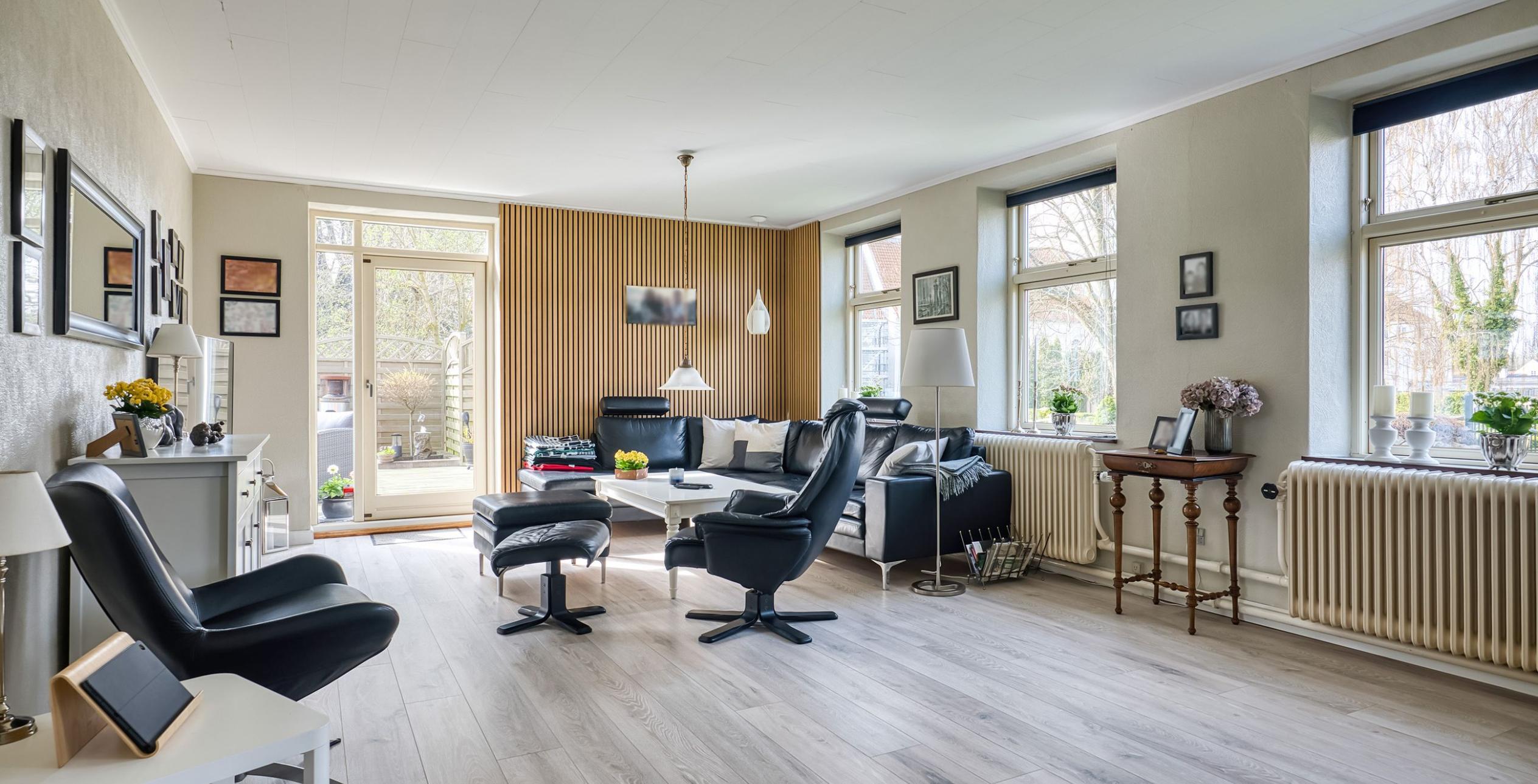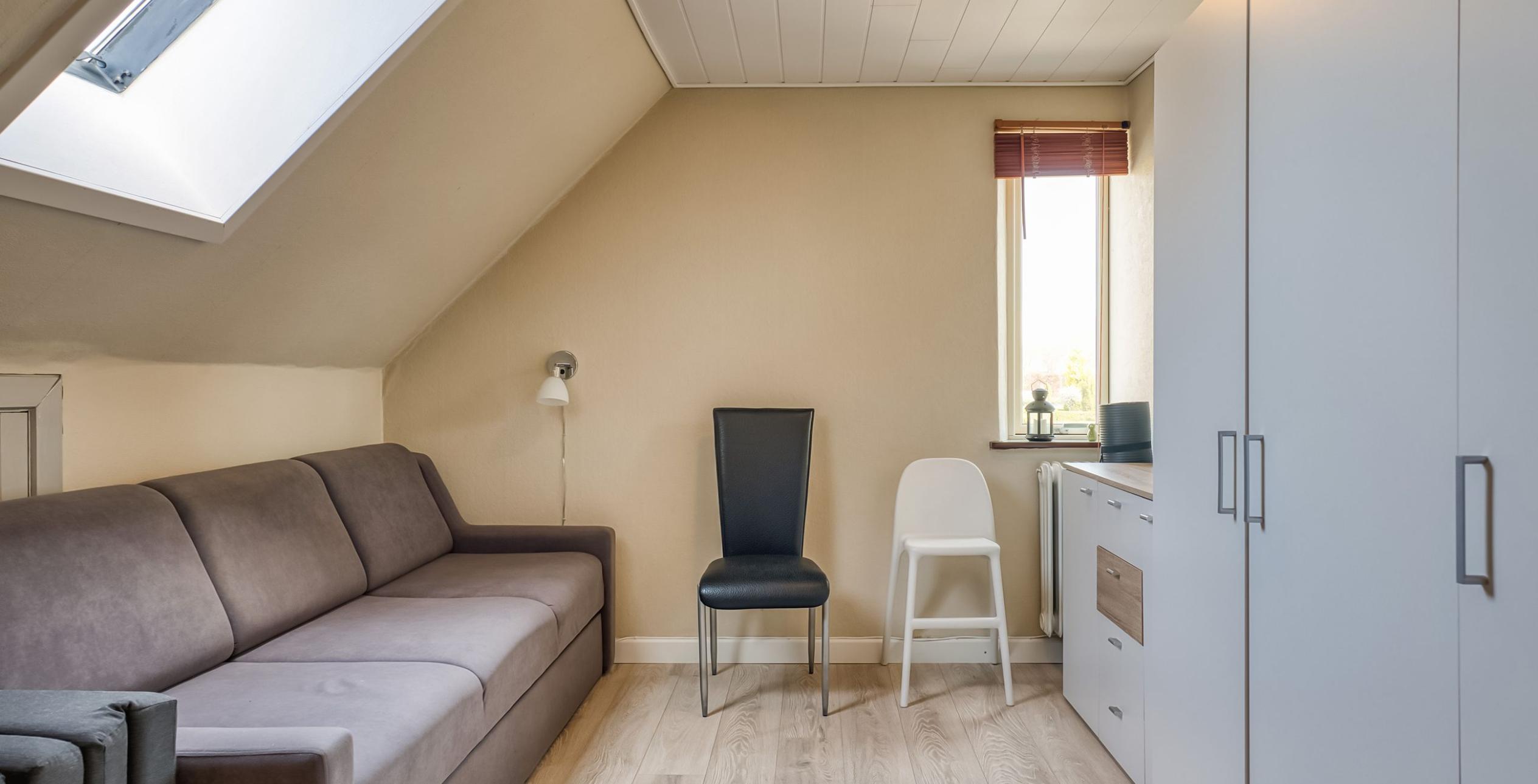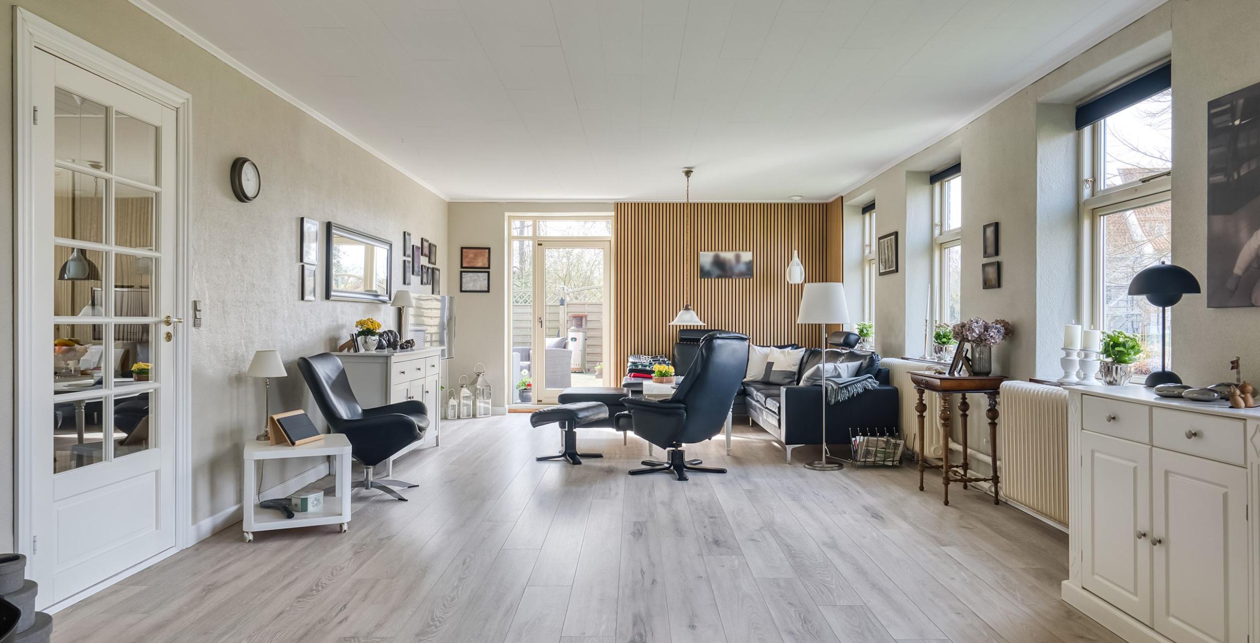 dagligstue, hvor der er installeret brændeovn, som kan gøre en allerede