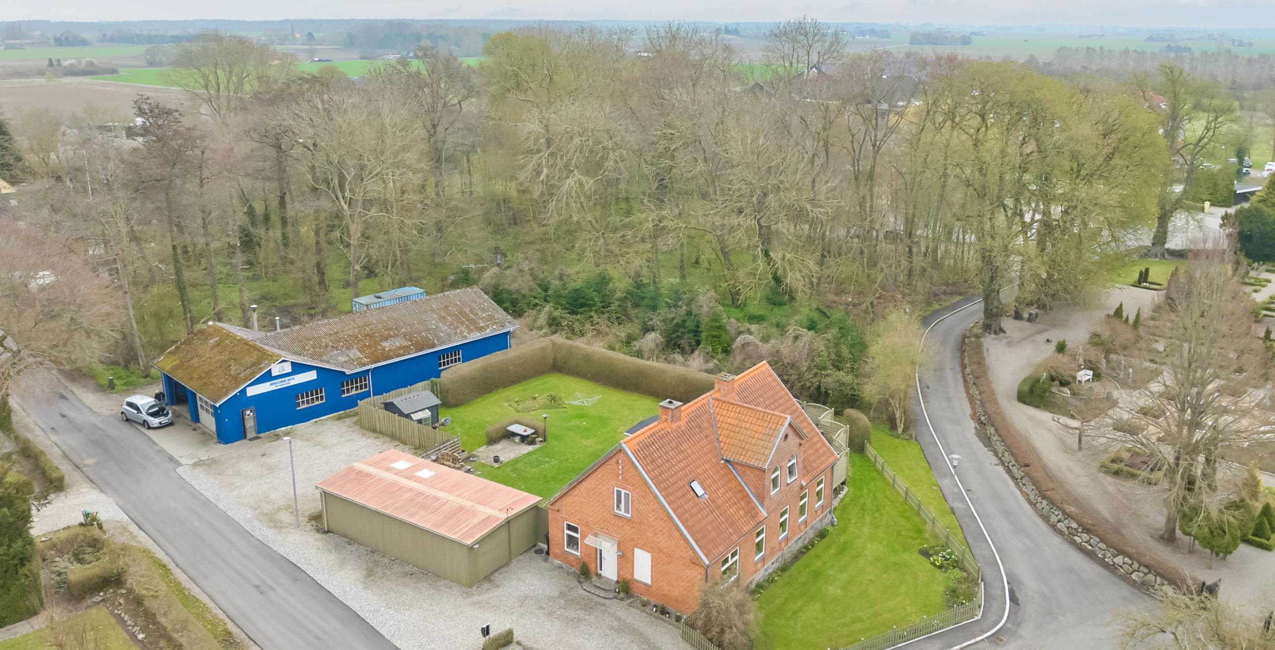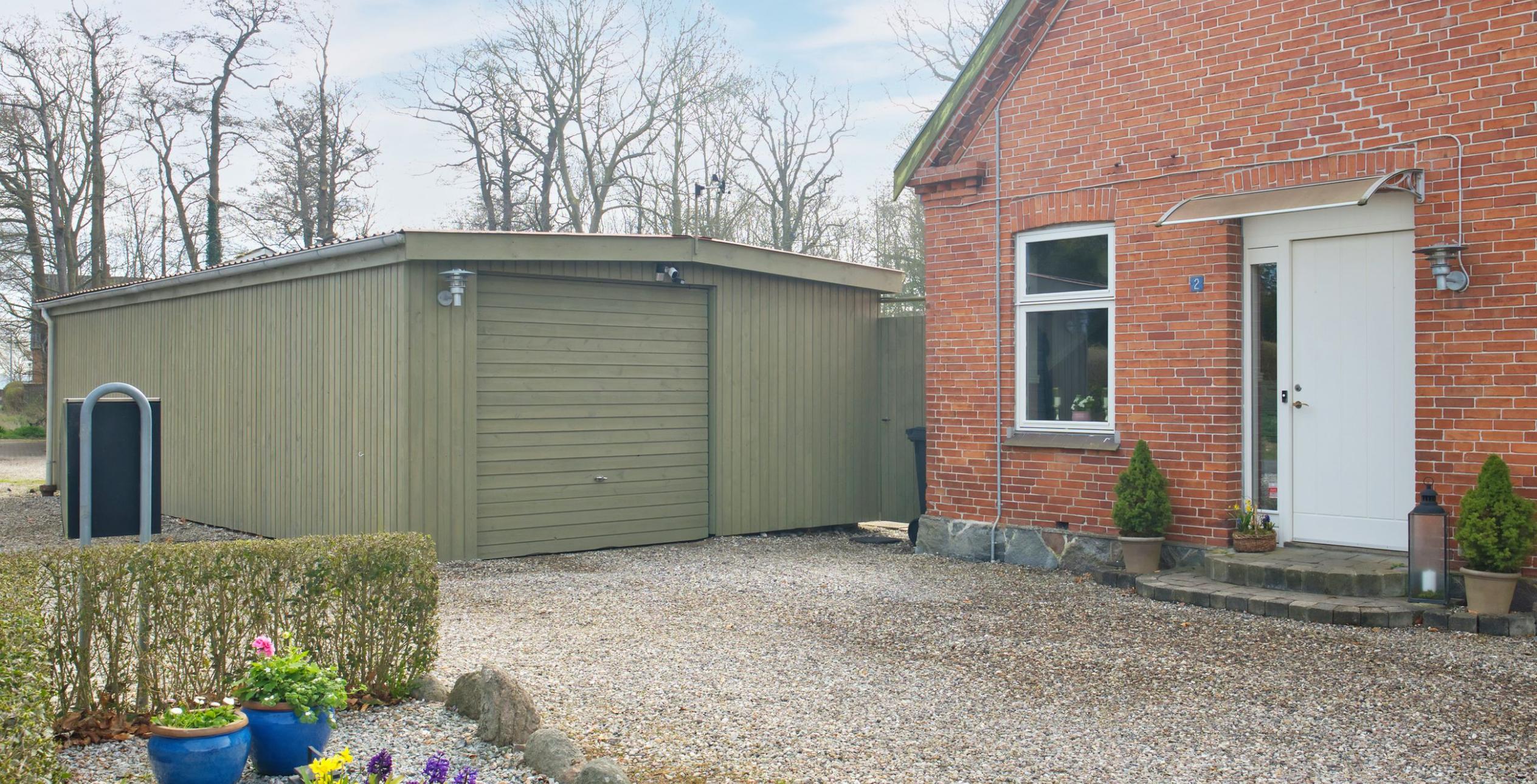 ejendommen hører en dejlig garage med tilstødende stort værksted med ståltag