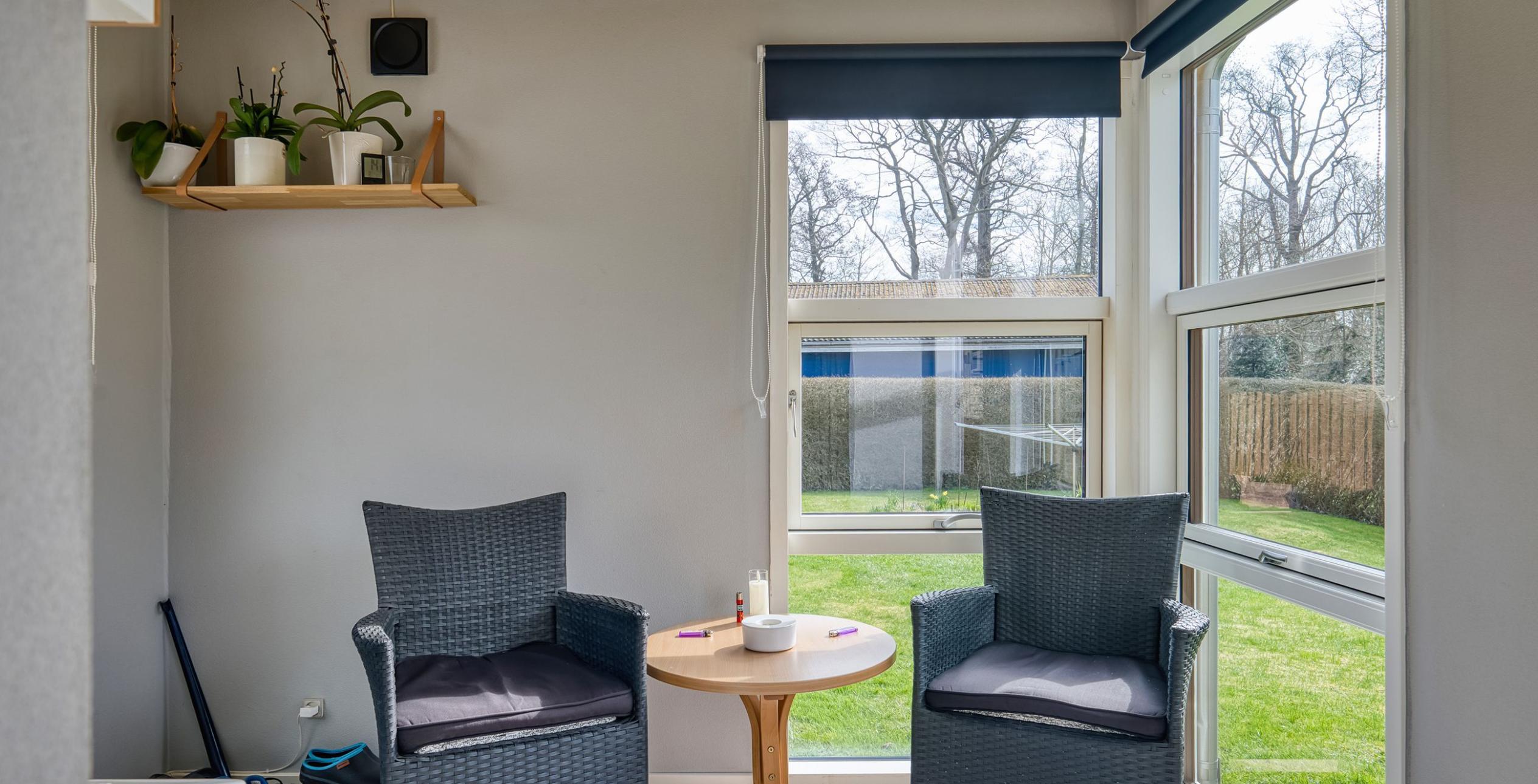 samt et mindre udhus. Derudover en dejlig lukket og vedligeholdelsesnem have,