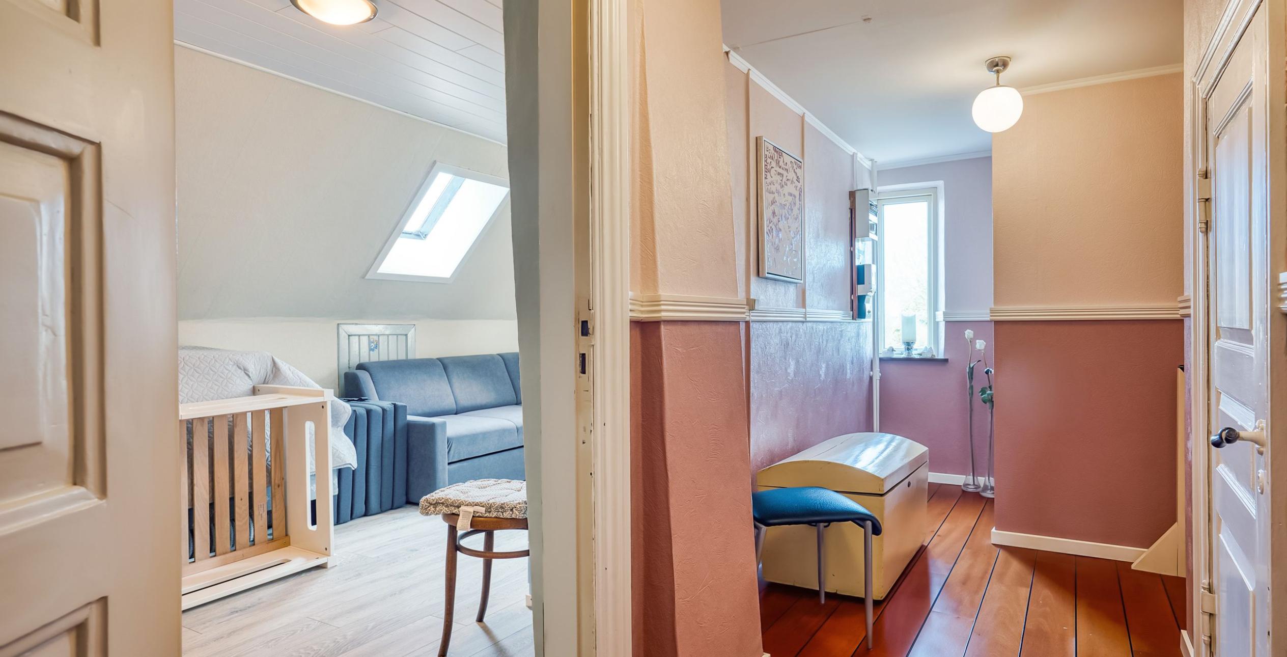 meget store værelser, hvoraf det ene tidligere har været opdelt i to.