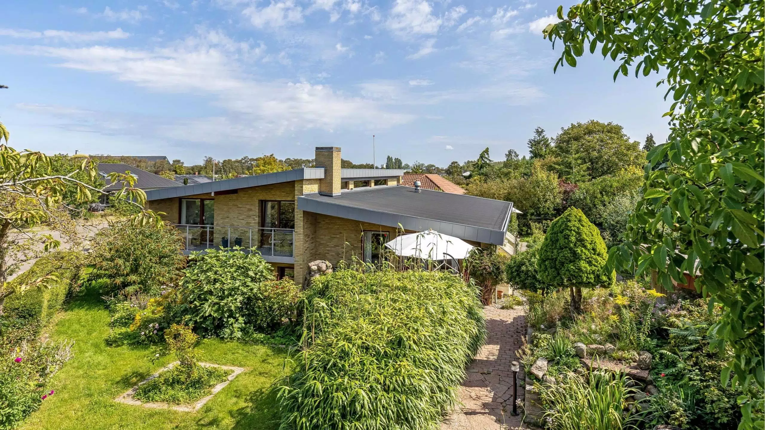 Til ejendommen hører en skøn have, der er flot anlagt i primært natursten, og med flere terrasseområder i forskellige niveauer samt nyttehave med flere højbedskasser i cortenstål.