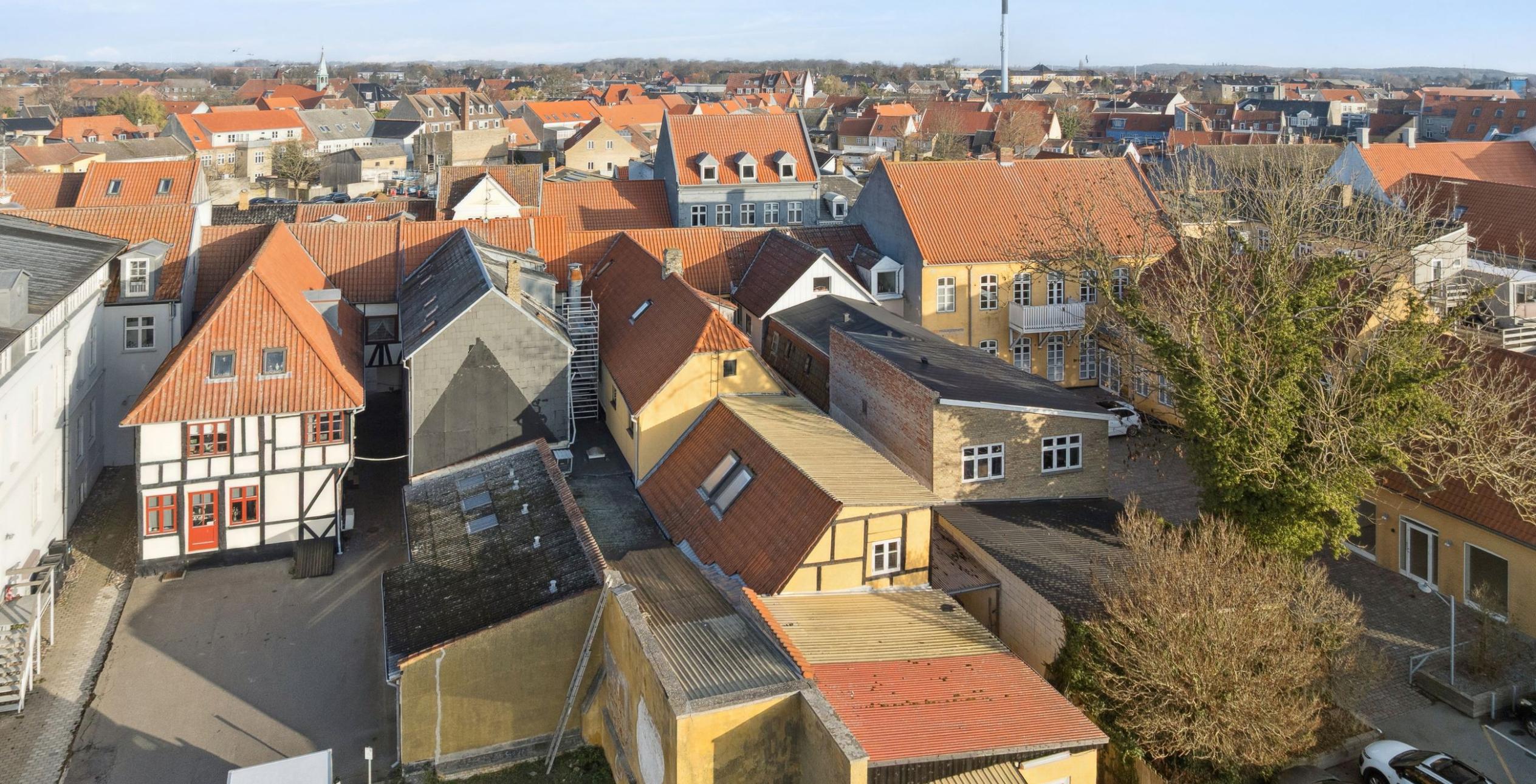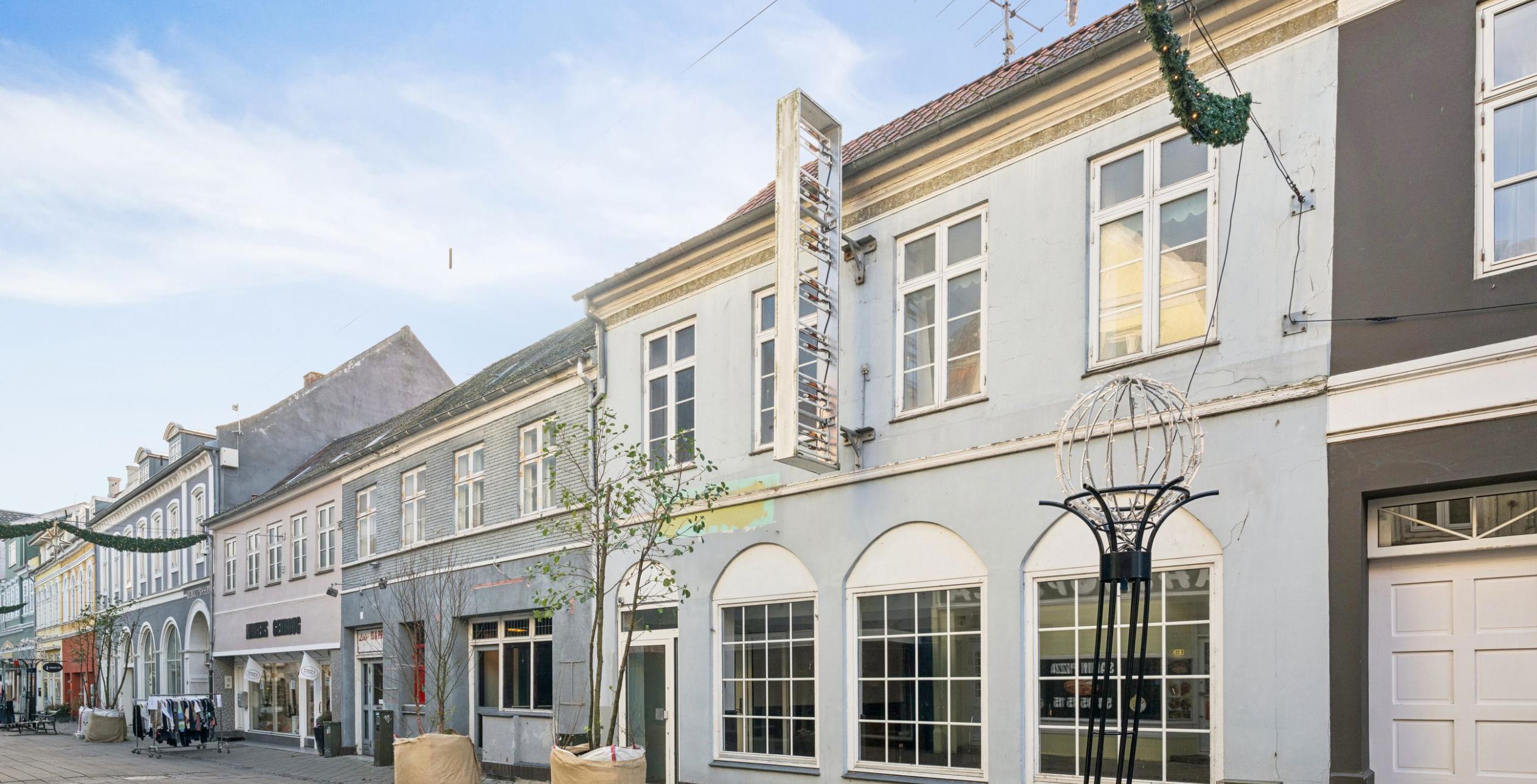 Ejendommen ligger centralt i Nakskov i gågaden, og dermed i hjertet af byen med bare 70 meter fra det nye smukke Axeltorv, og 100 meter til hele det maritime havnemiljø, ja nær alle hverdagens gøremål og dermed gode parkeringsmuligheder.