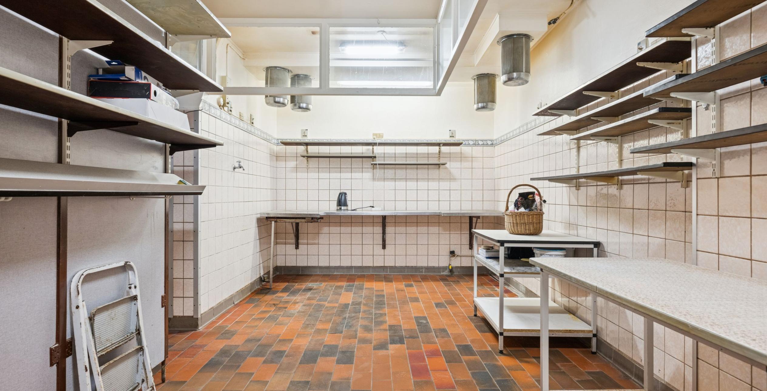 Ejendommen indeholder i stueplan et samlet erhvervsareal på 443 kvm. der er indrettet med stort industrikøkken i rustfri stål, herunder velfungerende kølerum, men også store gedigne rum, der tidligere har været både restaurant og cafeteria samt krostue, og således også med toiletforhold. Derudover arkade/passage til udendørsmuligheder, hvor der tidligere har været salg af is m.m., ligesom grundstykket bagved ejendommen mod sydvest og havnen er oplagt til fx udendørs gårdhave til bespisning.