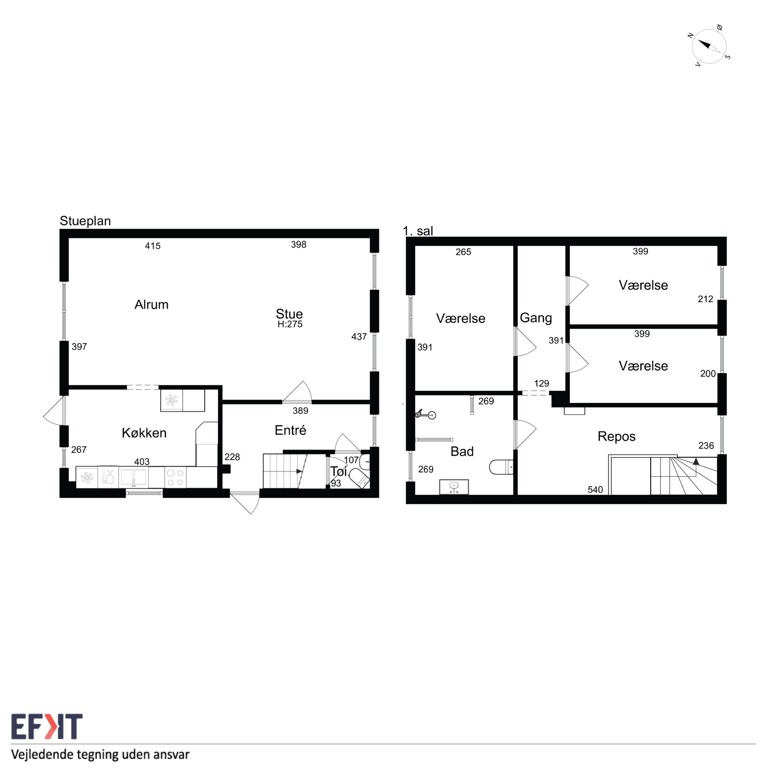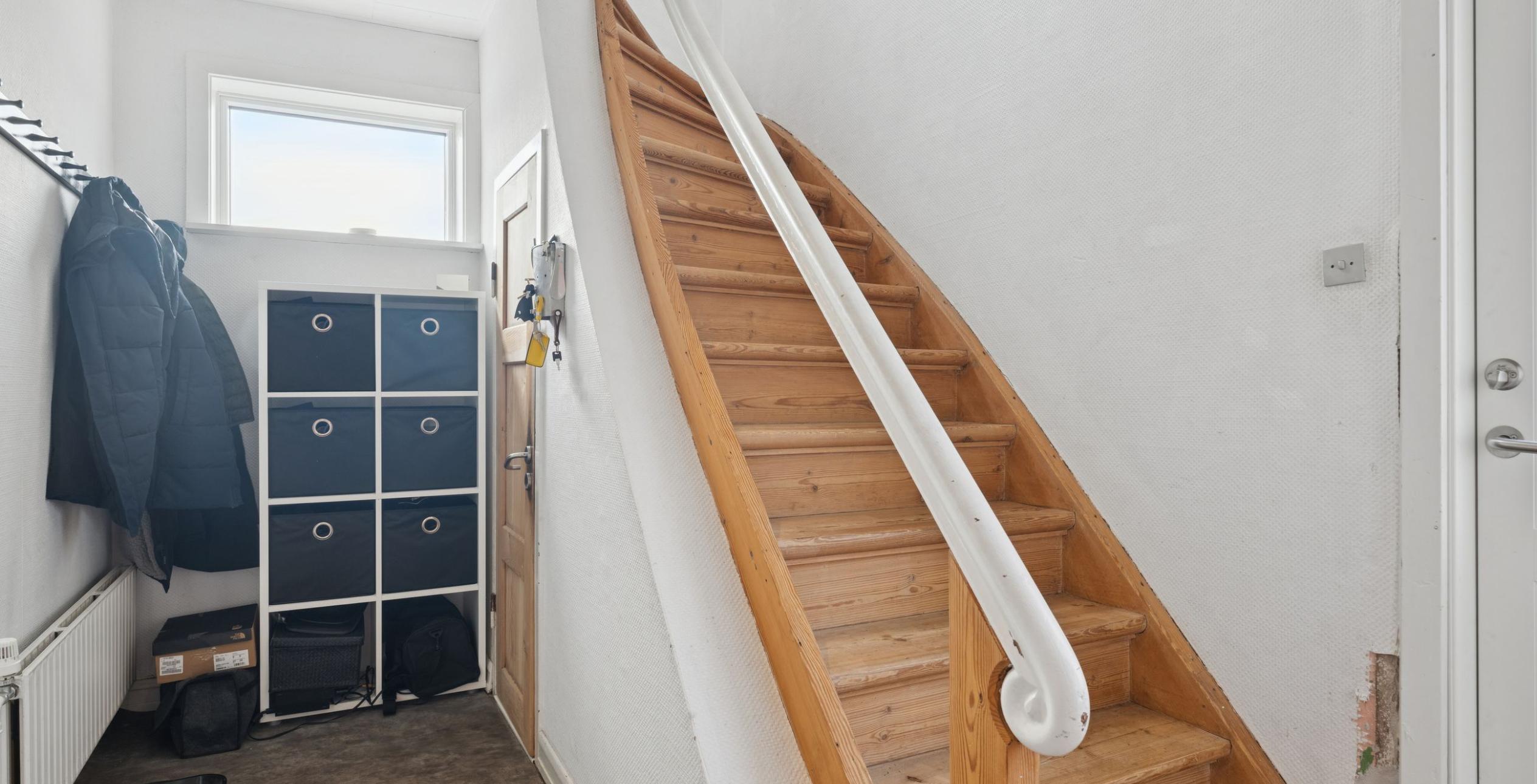 Ejendommen er indrettet med en entré med god trappe til 1. salen. Under trappen er der gæstetoilet med håndvask. Fra entréen ligger den rummelige stue med plads til både spiseafdeling og sofagruppe til afslapning. I forlængelse af stuen ligger køkkenet, og således med mulighed for at åbne op, hvis køkken/alrummet er drømmen. Fra køkkenet er der udgang til baggården og dermed haven.