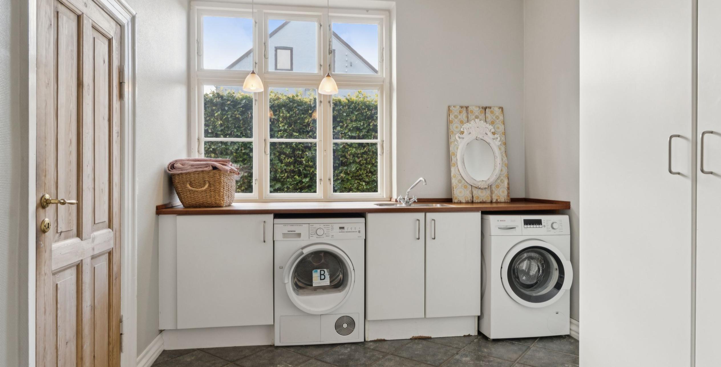Ejendommen er indrettet med præsentabel entré med trappe til 1. salen. Fra entréen er der adgang til den første af stuerne en suite – det oprindelige ’herreværelse’. I forlængelse heraf ligger dagligstuen med et fantastisk lysindfald, ligesom der er installeret Morsø brændeovn. Rummelig spisestue, der ligger i naturlig sammenhæng med køkkenet, som er med høje paneler, fyldningslåger og vitrineskabe i tråd med den gennemgående charme. I forlængelse af køkkenet ligger bryggerset med vaskeafsnit og god bord-/skabsplads samt tilstødende viktualierum. Stort flisebadeværelse med toilet, dobbelt håndvask og bruseniche samt gulvvarme, der også er etableret i køkken og bryggers. Endelig velindrettet gæstetoilet med håndvask.