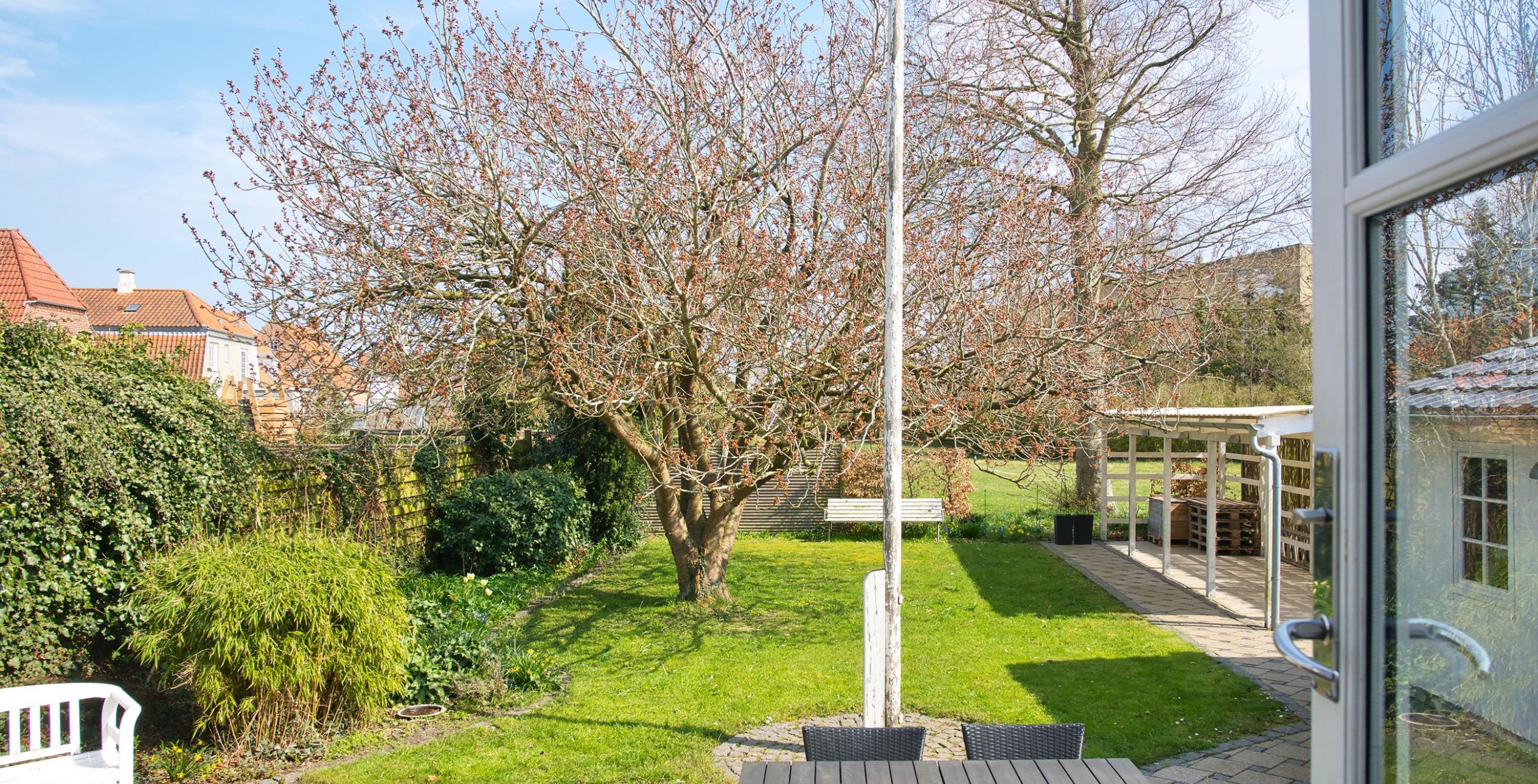 Til ejendommen hører en flot anlagt have med minimal vedligeholdelse, hvor den blå Rønne-granit i flisebelægningen er gennemgående, og det smukke japanske kirsebærtræ skaber en oase og frirum væk fra hverdagens gøremål, ja ren balsam for sjælen. Derudover en større overdækning med buet tagkonstruktion, der kan benyttes til både terrasse eller brændeopbevaring, samt et stort udhus til haveredskaber, opbevaring eller værksted.