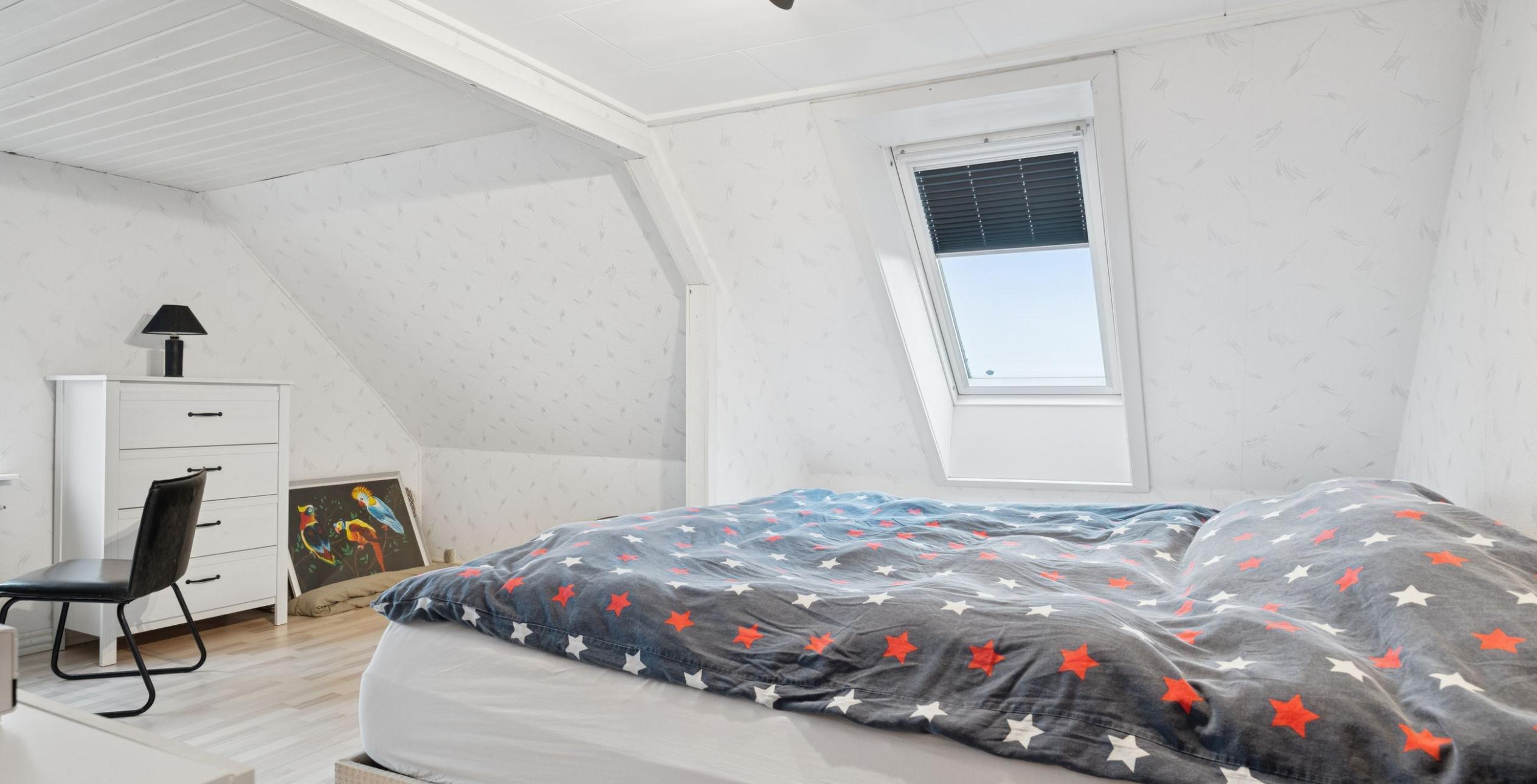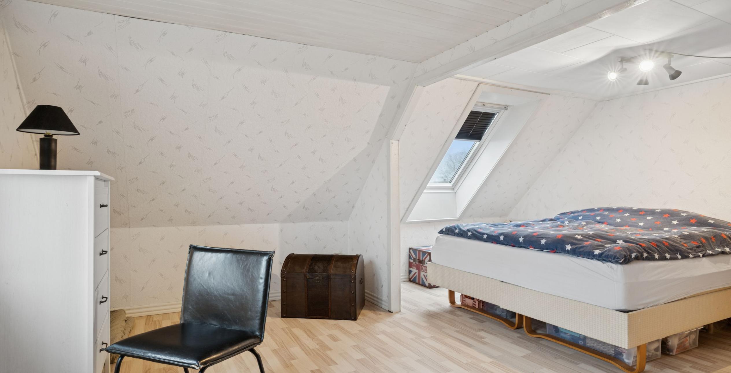 1. salen er indrettet med fordelingsgang med indbyggede skabe. Meget stort soveværelse, der oprindeligt har været 2 værelser, hvorfra der er en fantastisk udsigt ud over markederne og til fx dyrevildt. Derudover et godt børne-/gæsteværelse eller muligt walk-in-closet.