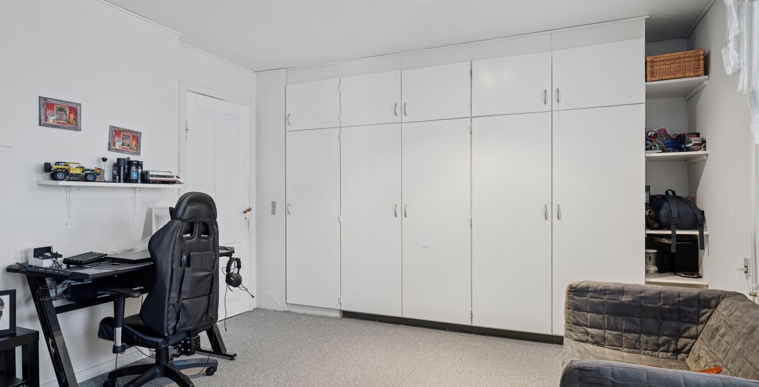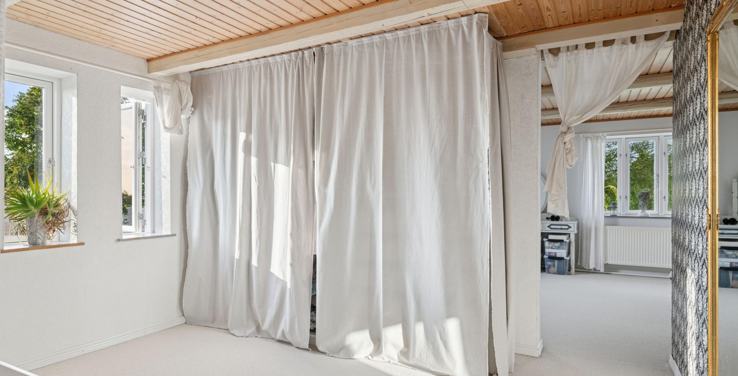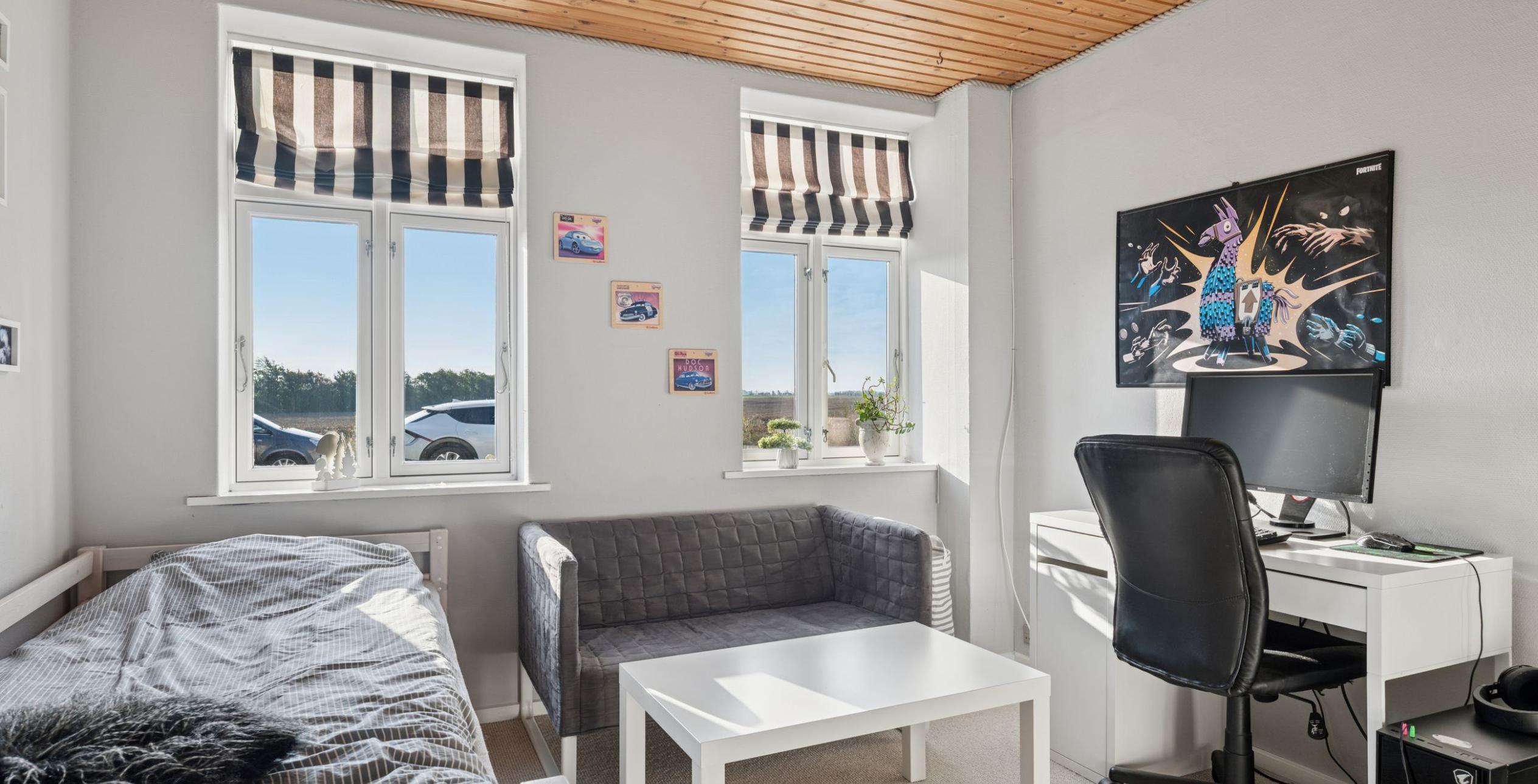 1. salen er indrettet med en mindre repos/fordelingsgang. Meget stort soveværelse med afblændet hems. Gennemgangsværelse der vil kunne indrettes som walk-in-closet. Derudover stort børne-/gæsteværelse med tilstødende uudnyttet og afblændet loftrum på ca. 10 kvm. der også vil kunne inddrages.