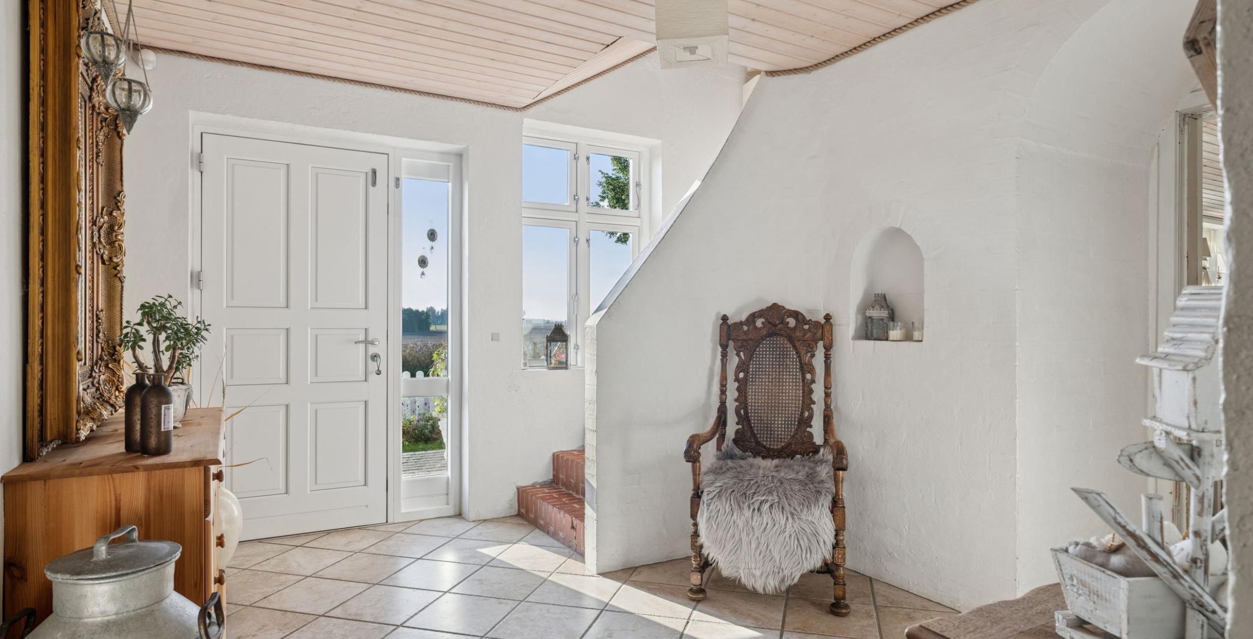 Ejendommen er indrettet med en charmerende entré, hvor trappen til 1. salen vidner om ejendommens historie og vel nærmest kan sammenlignes med en slotstrappe. Herfra ligger den rummelige stue med plads til både spiseafdeling og sofagruppe samt etableret gulvvarme ligesom i entre’en. I forlængelse ligger det enorme tidligere generatorrum og nuværende stue med pilleovn, hvor der med garanti ikke bliver udfordringer med lofthøjden til juletræsstjernen, men et rum der også kan fungere som multirum eller erhverv, uanset om det er liberalt eller kulturelt fx atelier. Nydeligt elementkøkken i landkøkkenstil, hvor der både er indrettet spisekrog og etableret gulvvarme, men også udgang til den sydvestvendte terrasse. Fra køkkenet ligger det store bryggers med vaskeafsnit og god skabsplads, ligesom der er adgang til 4 kvm. viktualiekælder og fyrrummet. 2 rigtig gode soveværelser med god skabsplads. Flot badeværelse i travertinfliser med toilet, håndvask og bruseniche samt gulvvarme.