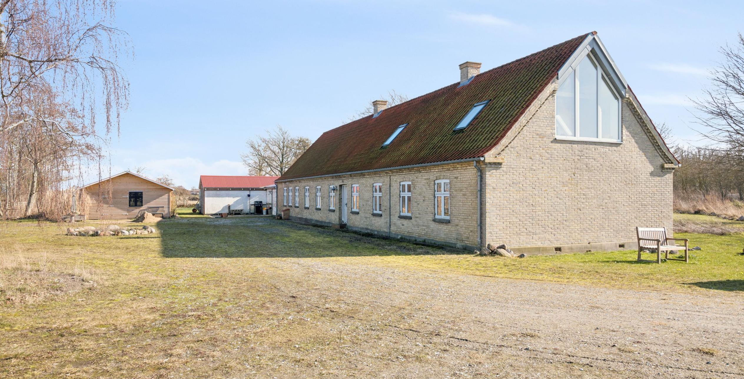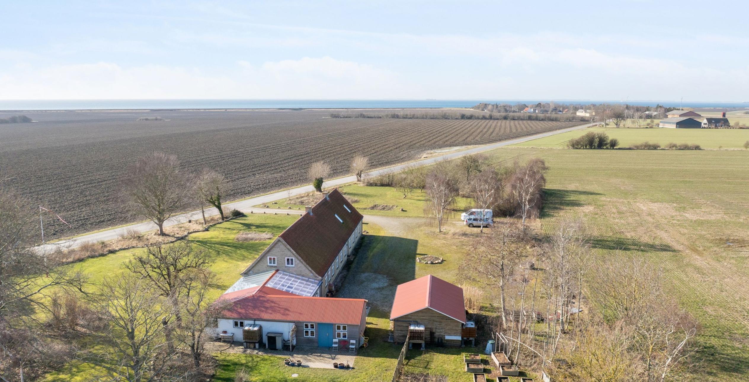 Ejendommen ligger i skønne landlige omgivelser med store vidder og højt til himlen, men ikke mindst med både havudsigt og udsigt til åbne marker. Fra ejendommen er der kun 1,3 km. til sydkysten og dermed vandet, og alene 3 km. til Albuen Strand – Lollands svar på Cold Hawaii, der er et oplagt område for vind-/og kitesurfere samt lystfiskere og naturelskere med det fantastiske fugleliv omkring Nakskov Fjord. Derudover er der 6,5 km. til Langø med charmerende og maritimt havnemiljø samt anerkendt spisested.