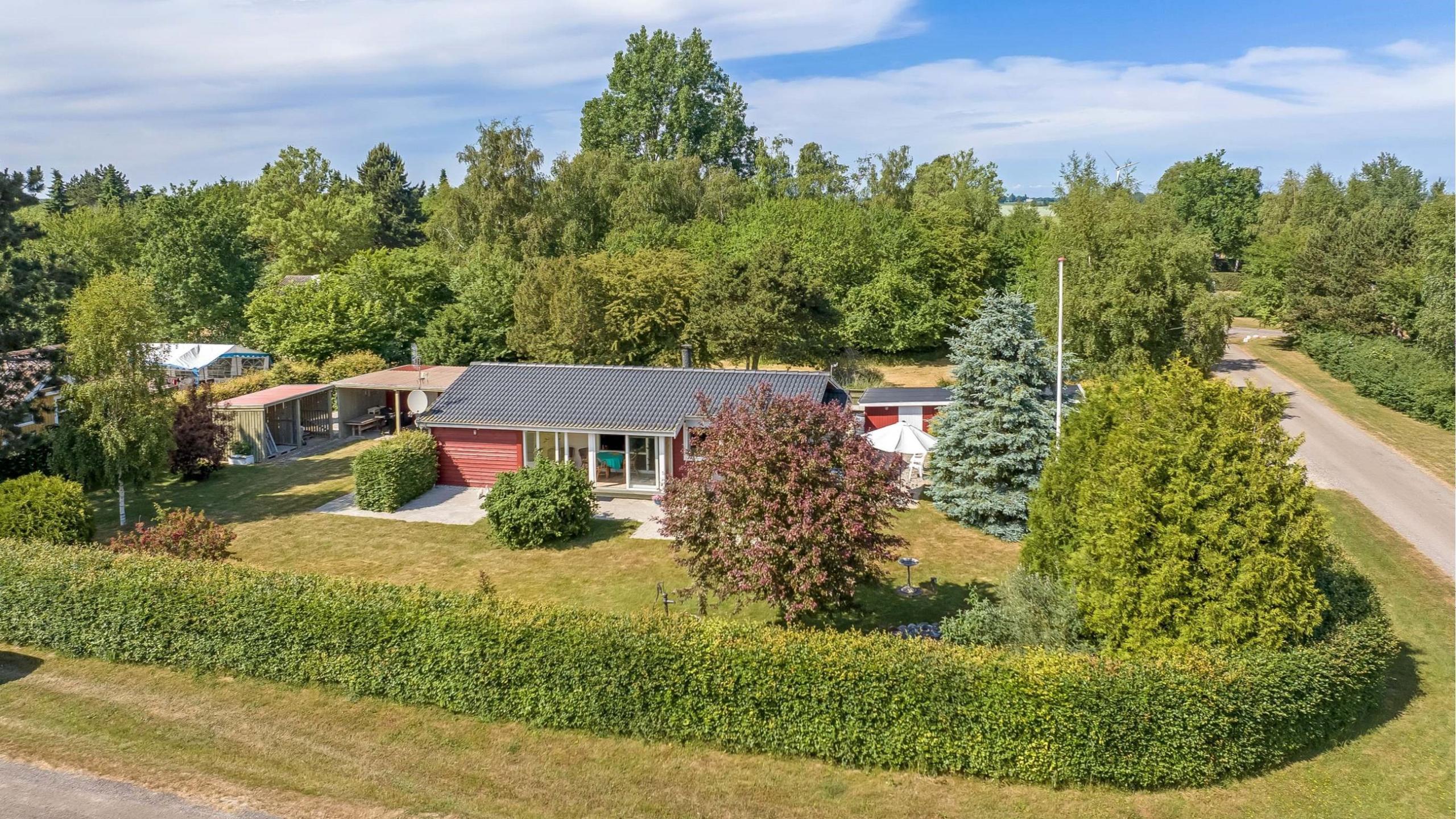 Dette rummelige sommerhus er beliggende i en mindre udstykning, som dermed er