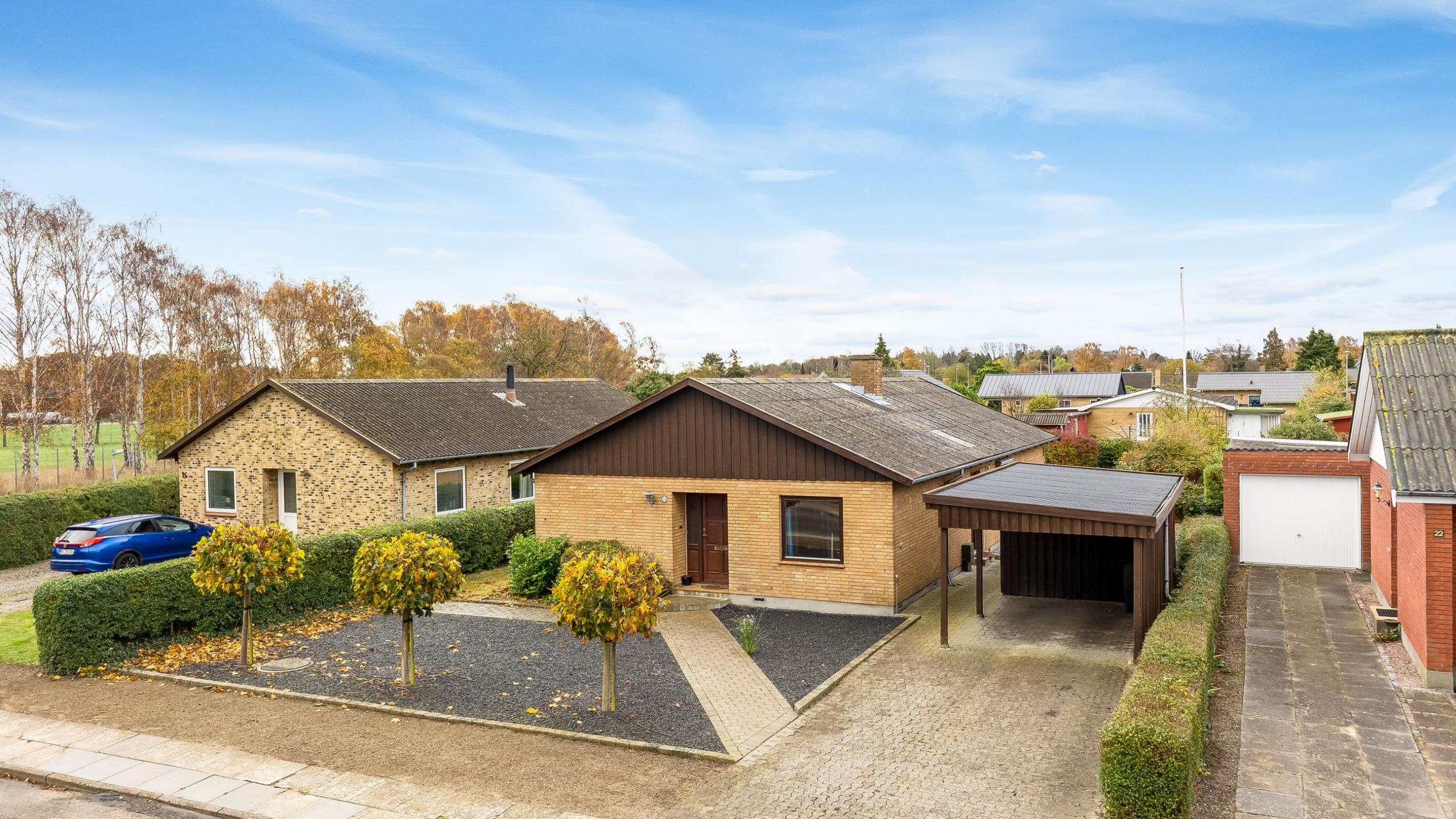 Til ejendommen hører en carport med udhus, samt en nyere og nem anlagt have, der således ikke kræver den store pasning, og hvor privatlivet kan nydes i fulde drag.