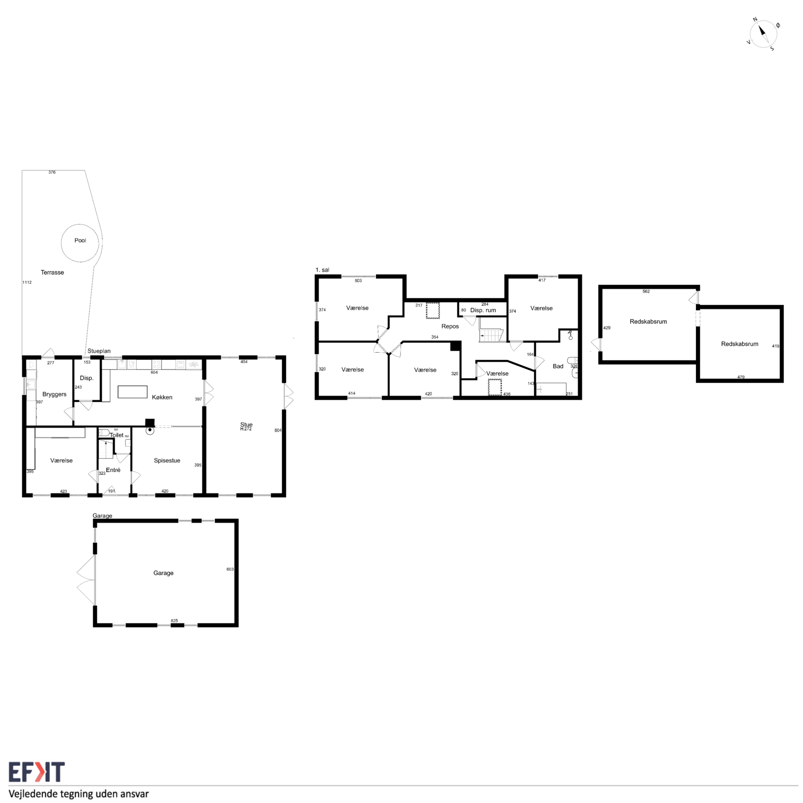 1. salen er indrettet med møblerbar repos og fordelingsgang. Hele 5 værelser samt et nydeligt badeværelse med toilet, håndvask, bruseniche, badekar og gulvvarme.