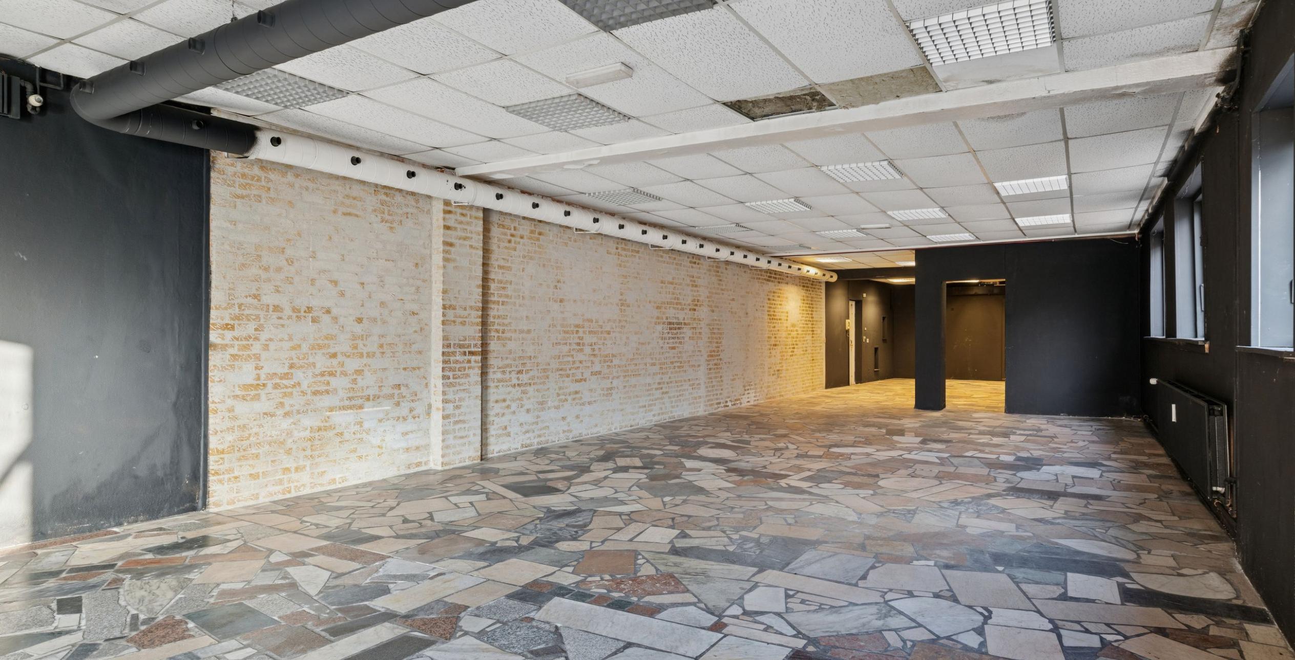Ejendommen indeholder i stueplan et samlet erhvervsareal på 443 kvm. der er indrettet med stort industrikøkken i rustfri stål, herunder velfungerende kølerum, men også store gedigne rum, der tidligere har været både restaurant og cafeteria samt krostue, og således også med toiletforhold. Derudover arkade/passage til udendørsmuligheder, hvor der tidligere har været salg af is m.m., ligesom grundstykket bagved ejendommen mod sydvest og havnen er oplagt til fx udendørs gårdhave til bespisning.