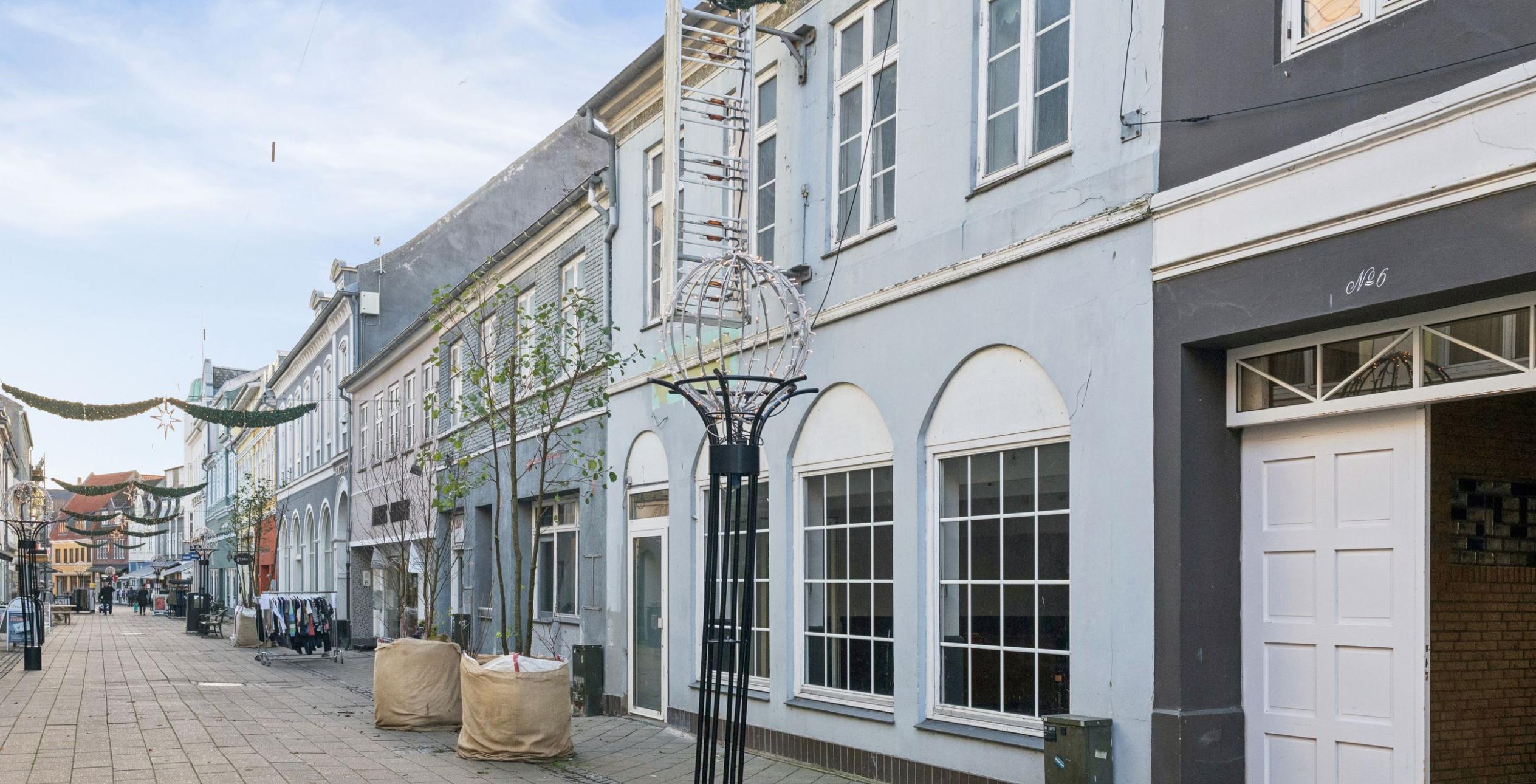 Ejendommen ligger centralt i Nakskov i gågaden, og dermed i hjertet af byen med bare 70 meter fra det nye smukke Axeltorv, og 100 meter til hele det maritime havnemiljø, ja nær alle hverdagens gøremål og dermed gode parkeringsmuligheder.