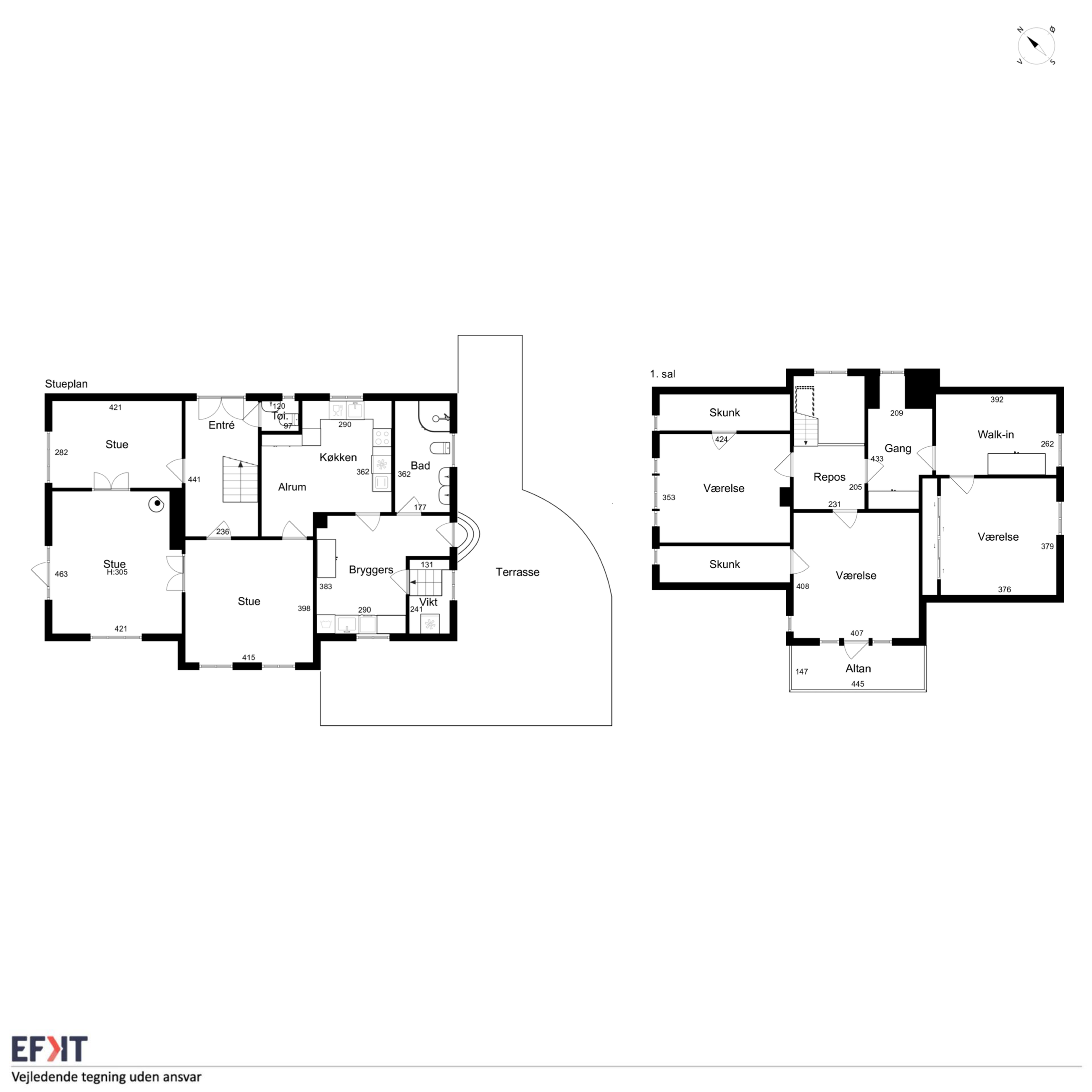 1. salen er indrettet med mindre repos og fordelingsgang. 3 store soveværelser, der har adgang til både walk-in-closet eller rummelige skunke til opbevaring, ligesom der er udgang til sydvendt altan fra det ene værelse.