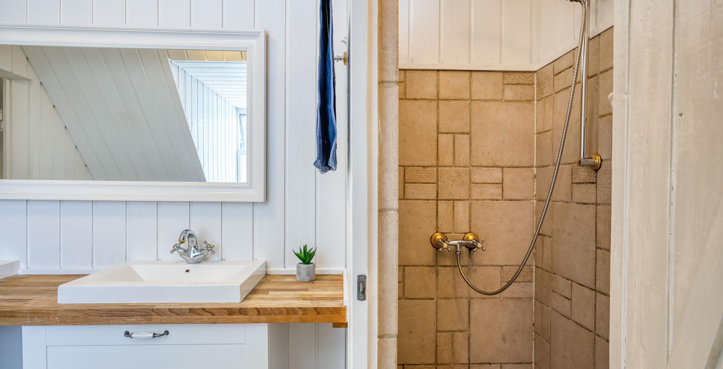 Til ejendommen hører en flot anlagt have med minimal vedligeholdelse, hvor den blå Rønne-granit i flisebelægningen er gennemgående, og det smukke japanske kirsebærtræ skaber en oase og frirum væk fra hverdagens gøremål, ja ren balsam for sjælen. Derudover en større overdækning med buet tagkonstruktion, der kan benyttes til både terrasse eller brændeopbevaring, samt et stort udhus til haveredskaber, opbevaring eller værksted.