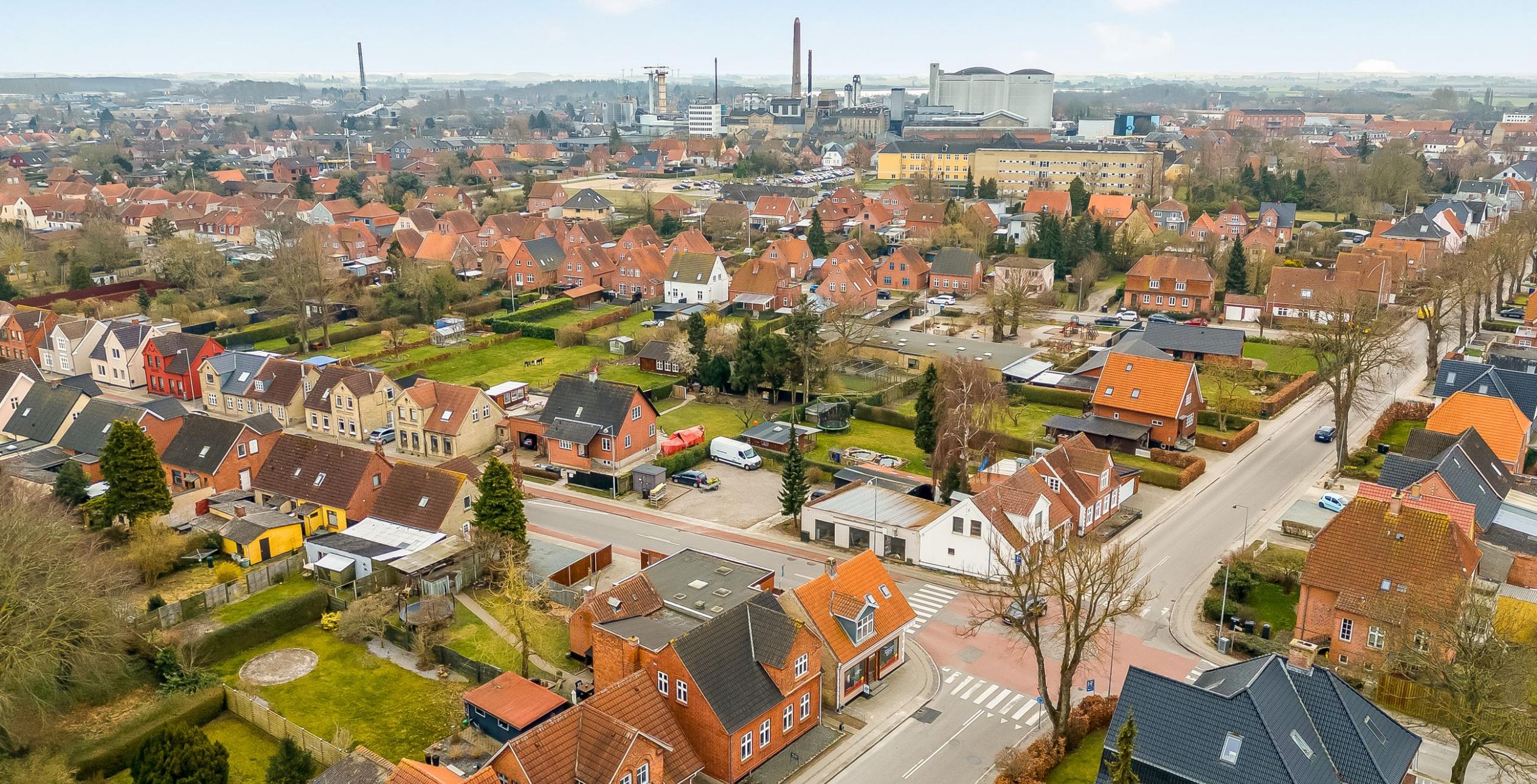 Ejendommen er attraktivt beliggende i den ældre og charmerende del af byen, og dermed utrolig centralt i forhold til alle hverdagens gøremål, hvor der er under 700 mtr. til både daginstitution, Stormarksskolen og indkøbsmulighed, ja hele den indre by med også gode transportmuligheder, foreningsliv samt café og havnemiljøet. Hvis børnene er opsatte på en skovtur eller hunden en gåtur, så ligger det grønne naturområde ved Svingelen med legeplads, søer og stisystemer alene 550 mtr. nede af vejen.