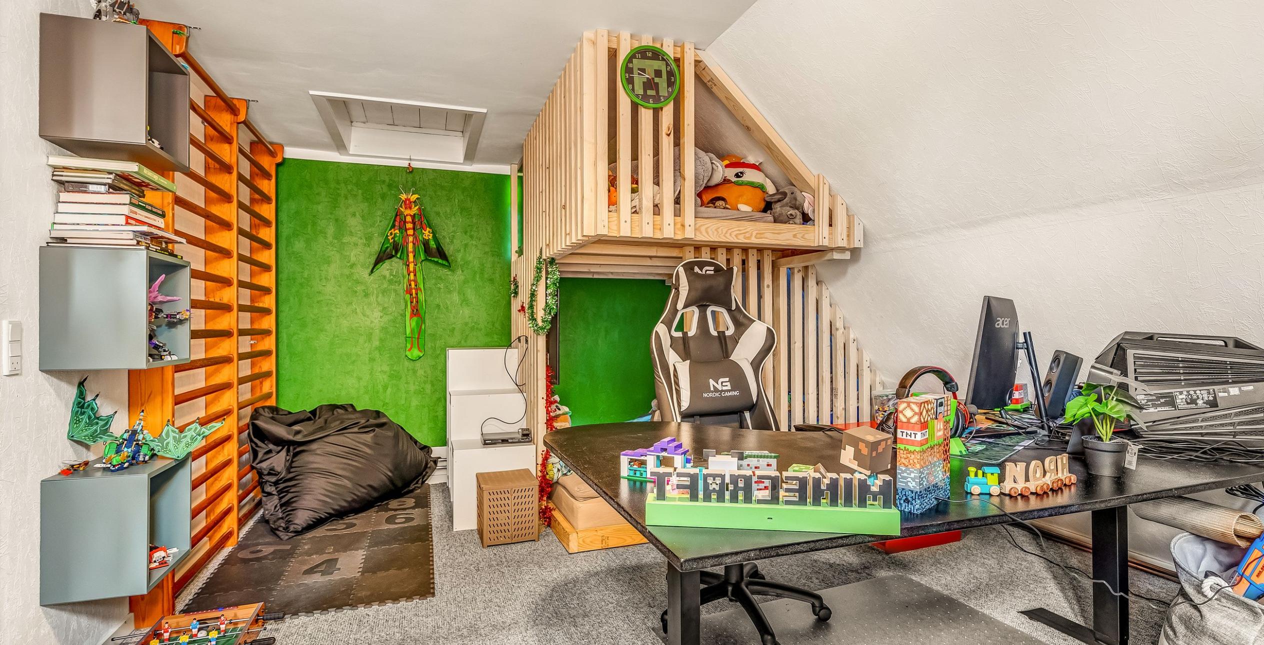 1. salen er indrettet med en repos og fordelingsgang. Her er der adgang til 3 rigtig gode værelser, hvoraf der vil være mulighed for at de 2 værelser vil kunne opdeles til 3, hvis behovet er herfor. Derudover et rummeligt badeværelse med toilet, håndvask og bruseniche.