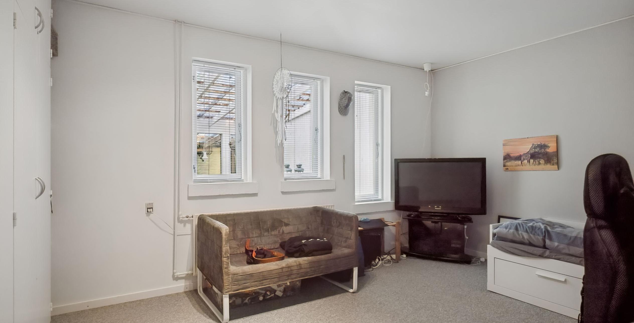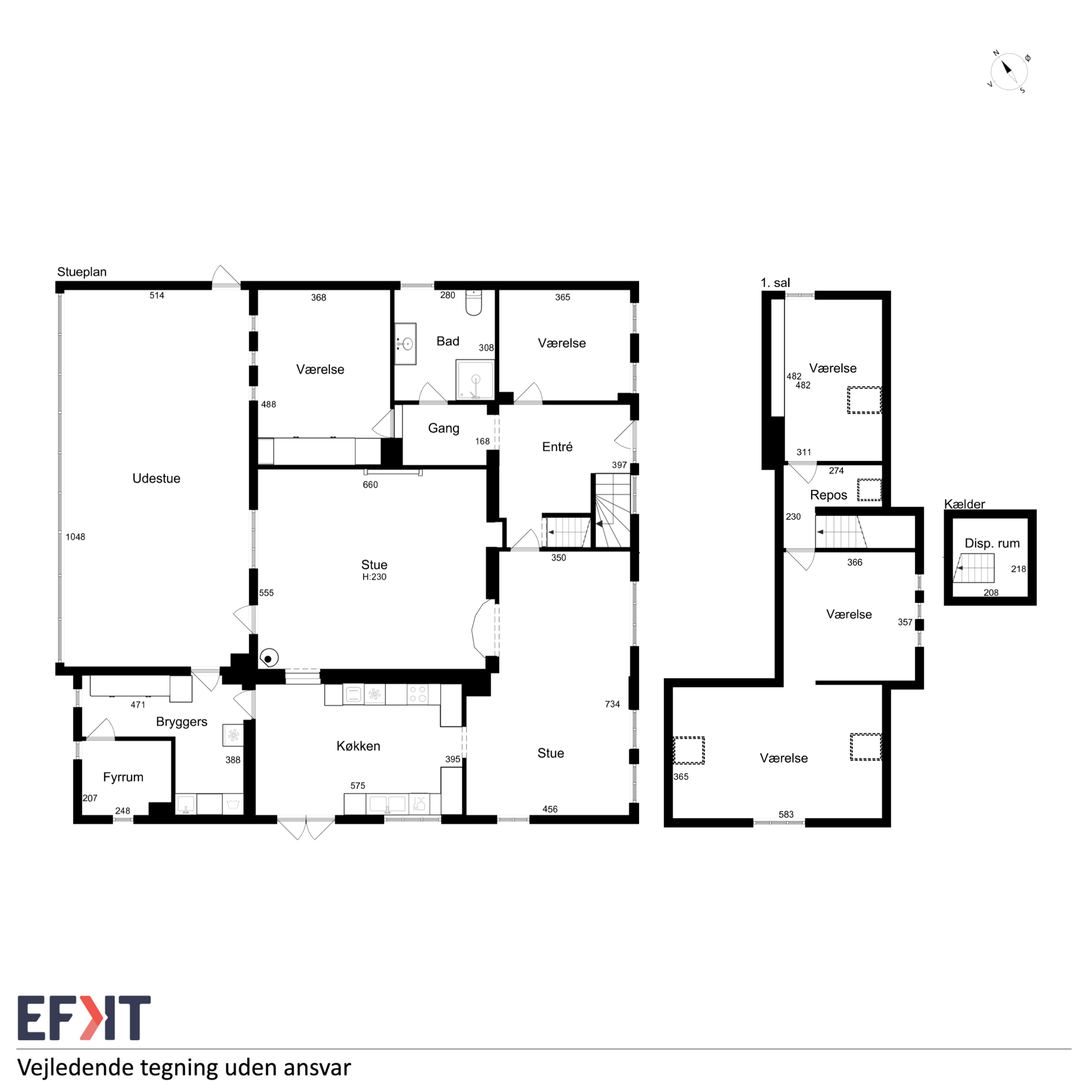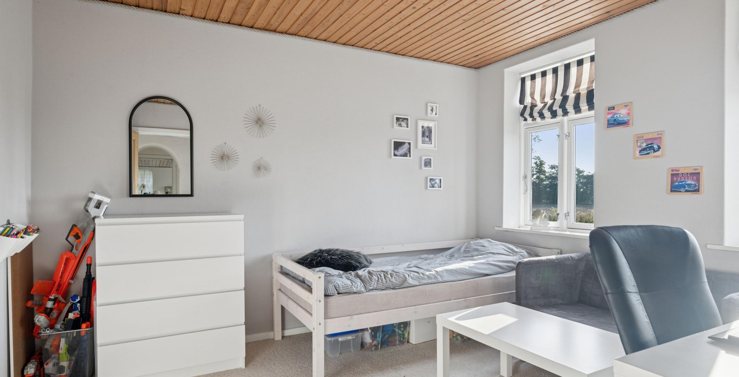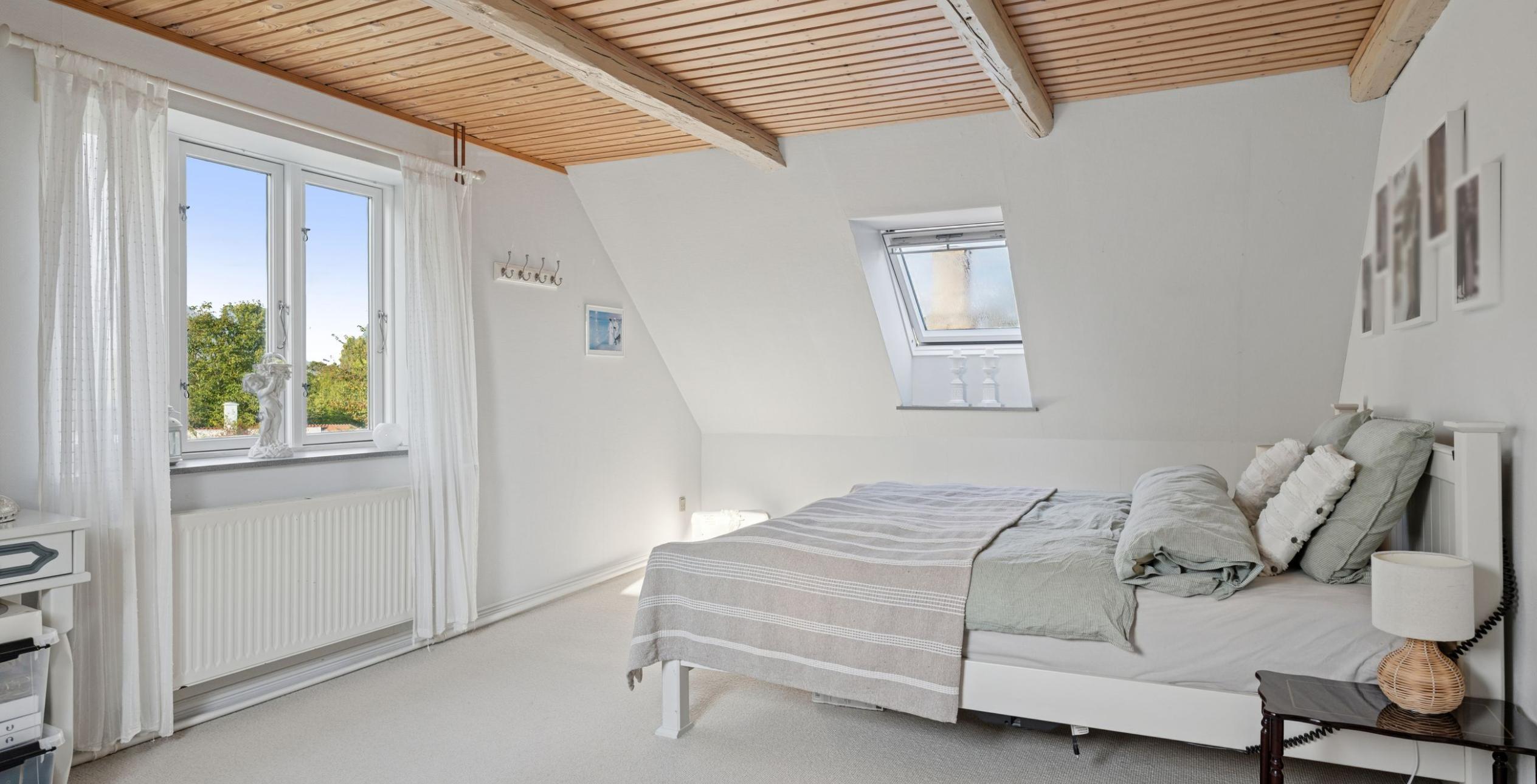 1. salen er indrettet med en mindre repos/fordelingsgang. Meget stort soveværelse med afblændet hems. Gennemgangsværelse der vil kunne indrettes som walk-in-closet. Derudover stort børne-/gæsteværelse med tilstødende uudnyttet og afblændet loftrum på ca. 10 kvm. der også vil kunne inddrages.
